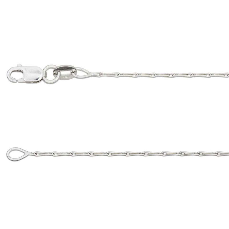 This 9 Carat White Gold Barleycorn chain is ideal for showcasing small pendants and charms. This Barleycorn chain is 1.2mm wide and each teardrop shaped link is approximately 3.8mm in length.