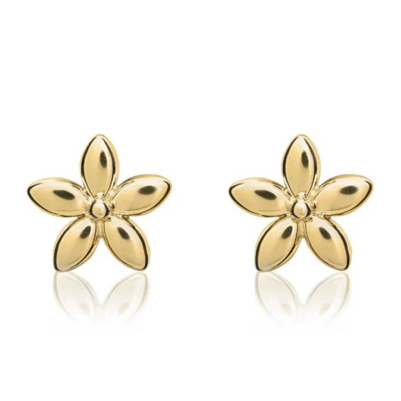 These earrings feature a five petal daisy in polished 9ct yellow gold. post and butterfly fitting. Width: 9mm