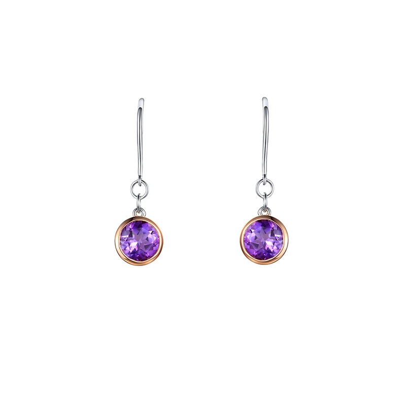 Rub over set, single round blue topaz drop hook earrings, set in 9ct white and rose gold. Amethyst measures: 7mm. About Amore A family business bringing people together for over 40 years, their in-house jewellery designers have combined their expertise to