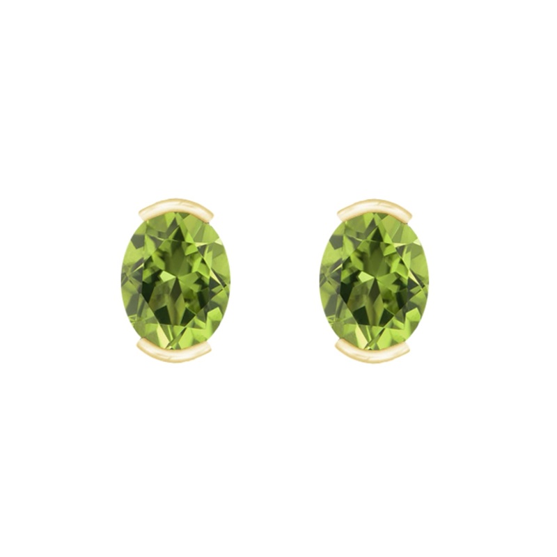 Simple stud earring featuring a partial collar set oval peridot in 9ct yellow gold with post and butterfly fittings. Peridot measures 8x6mm