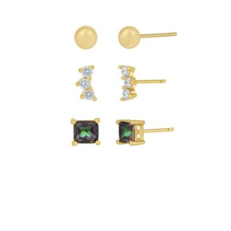 And Now This Cubic Zirconia Glass 18K Gold Plated Three Pair Earrings And Now This Cubic Zirconia Glass 18K Gold Plated Three Pair Earrings