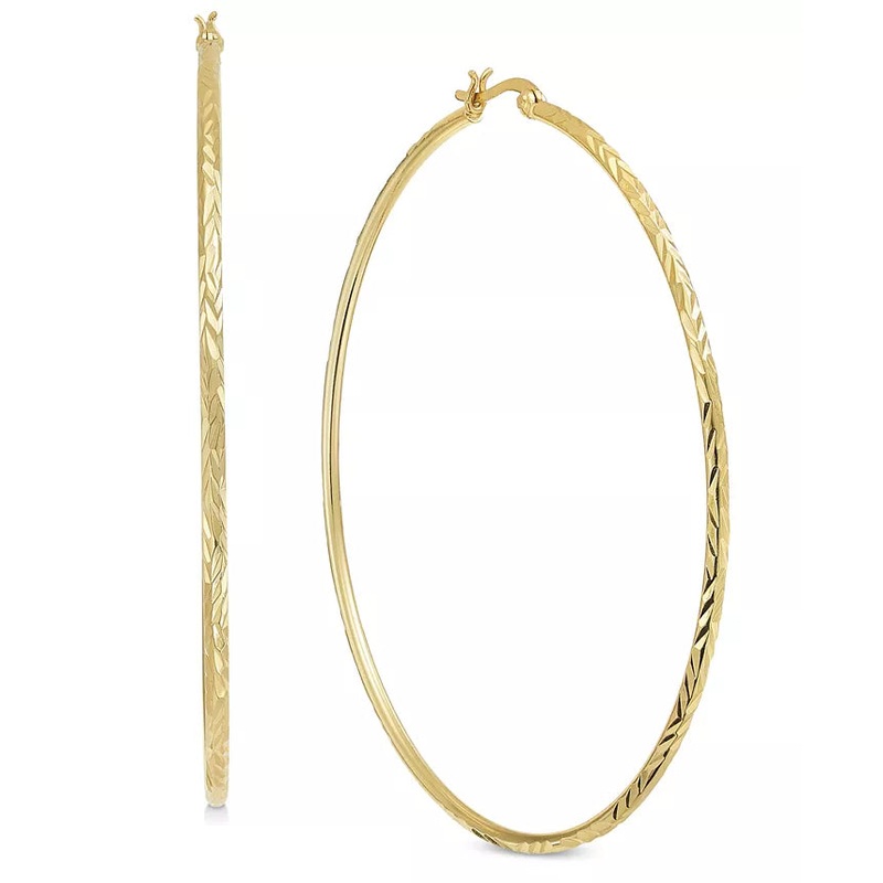 And Now This Women's Gold Textured Hoop Earring. Seize the day and the style with these outrageously chic textured hoop earrings by Essentials. Product Features Available in fine silver-plate or 18k gold over fine silver-plate