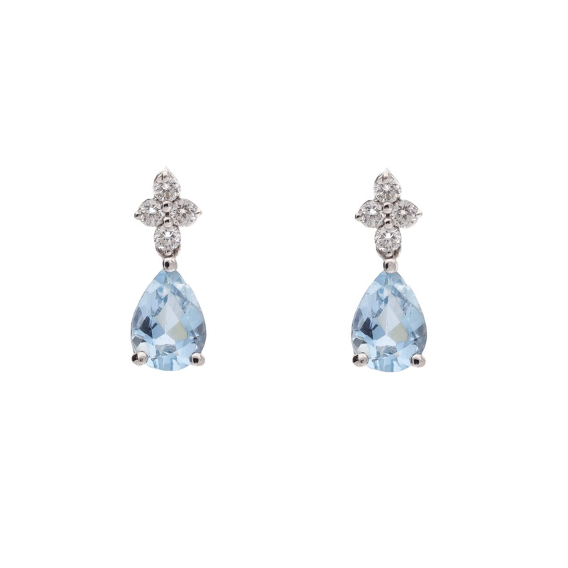Aquamarine and Diamond Pear 18ct White Gold Drop Earrings