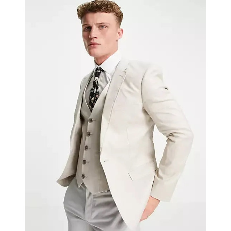 Asos Design Men's Ecru Blazer ANF1640 _Wedding Skinny Suit Jacket In Stone Cotton Linen