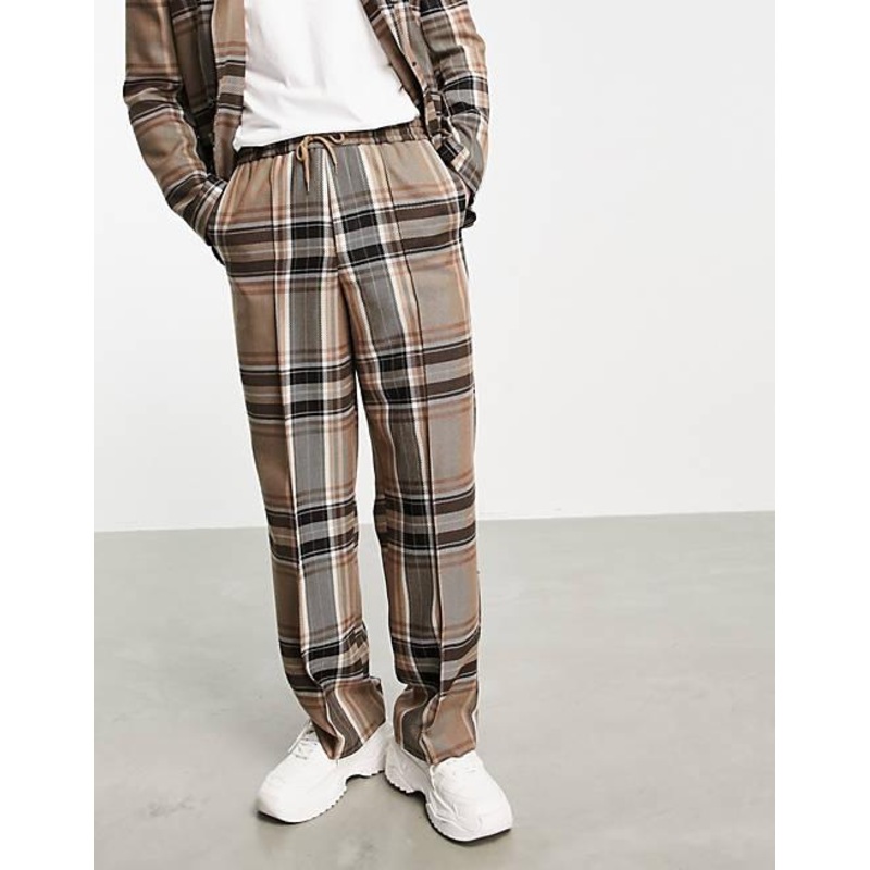 ASOS Design Men's Multicolor Checkered Wide Leg Trousers Wide leg suit trousers with elastic waist in black check