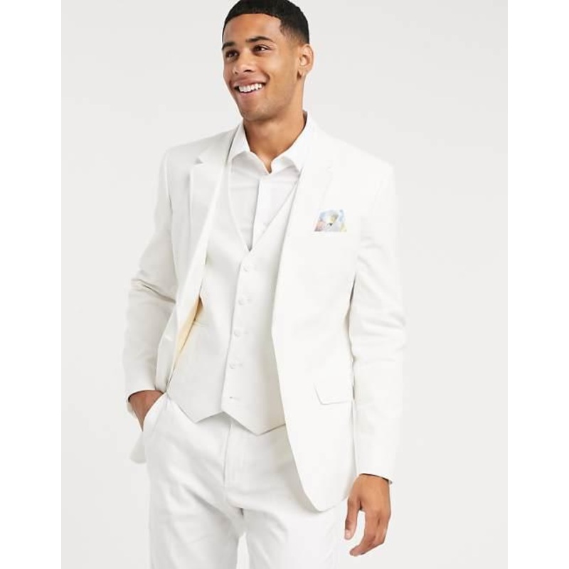 Asos Design Men's White Skinny Blazer ANF2856 asos design wedding skinny suit jacket in stre cotton linen in white With classic lapels and a streamlined finish, this suit jacket offers a polished appearance, ideal for any stylish gentleman's wardrobe.