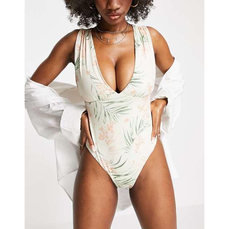 Asos Design Women's Multicolor Swimsuits ANF3481 ASOS DESIGN fuller bust gathered plunge swimsuit in palm print