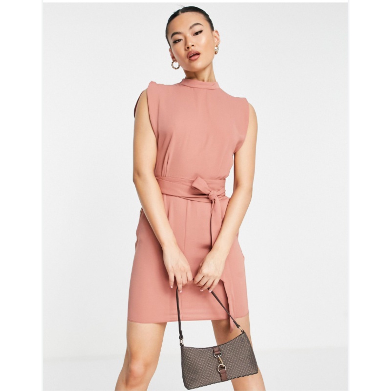 Asos Design Women's Pink Dress ANF836 Asos Design_split sleeve mini dress with obi belt in terracotta
