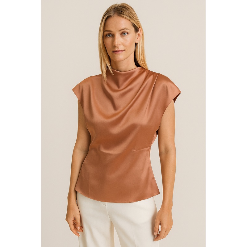 Asos Design Women's Rose Pink Blouse ANF683 ___ satin drape front___