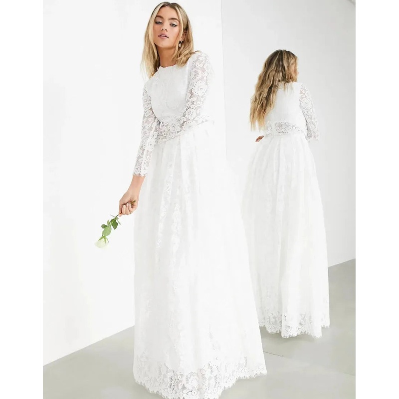 Asos Design Women's White Dress ANF943 _Grace Lace Crop Top Wedding Dress Ivory