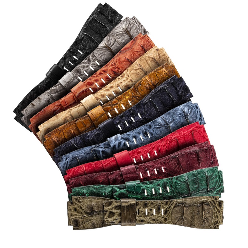 Bell & Ross - Bracelet de montre cuir haut de gamme - Alligator corn de tte - Noir, marron,gris, beige, moutarde, bleu, bleu marine, vert, kaki, rouge, bordeaux Descriptif: Bracelet montre Made in France en cuir dalligator corn vritable pour montres Bell &
