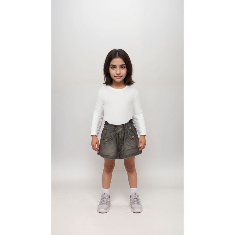 Boboli Girl's Washed Black Denim Skirt Versatile Style: The washed black denim offers a casual, trendy look that pairs easily with various tops for different occasions. Button Detail: Features a row of stylish buttons down the front, adding a touch of char