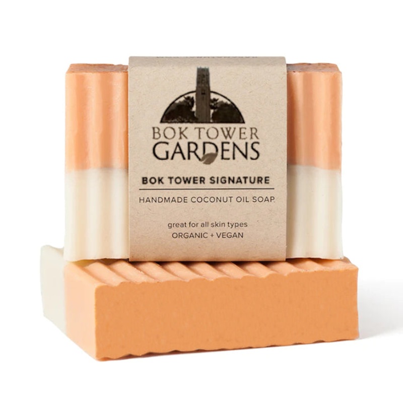 This signature soap waslocally handcrafted exclusivelyfor Bok Tower Gardens by Rafa Natural. It perfectlyblendsthe creamy sweet scent of Magnolia and the light citrus scent of Orange Blossom tocapture the aromatic essence of the gardens. It smells heavenly