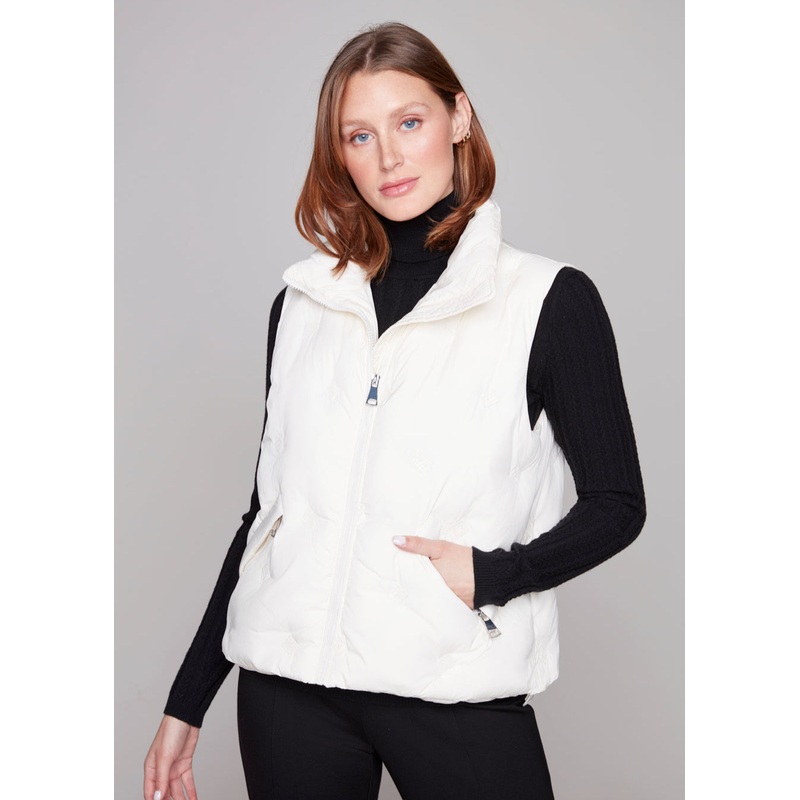 Stay stylish and warm with the Carre Noir Crop Quilted Vest. This lightweight, short puffy vest features a quilted design and convenient side zipper pockets for secure storage. Available in three versatile colors, its perfect for layering and adding a cont