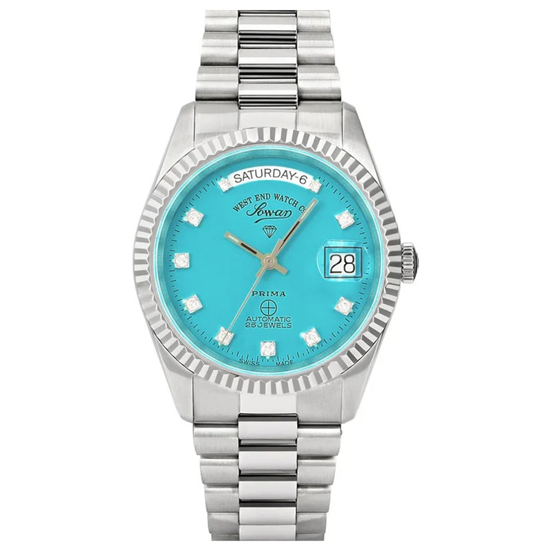 Special Edition with 10 Real diamonds size 1.8mm and 1.3mm. Comes with a certificate and signed by the CEO of West End. Movement:Swiss automatic with Day-DateCrystal:Double curved sapphireCase material:stainless steel with transparent CasebackCase diameter