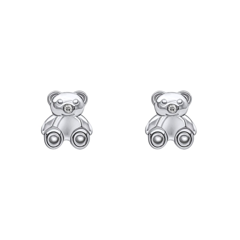 Explore the curiosity of childhood with these adorable stud earrings. Crafted with care from recycled sterling silver and finished with a platinum plating, these delightful earrings capture the essence of innocence and playfulness. Designed with adorable teddy bear motifs, these earrings are a wonderful addition to any little one’s jewellery collection. A small diamond delicately set on the nose of each teddy bear adds a touch of sparkle and magic. Make sure to combine with the matching pendant and expanding bangle for a complete set!