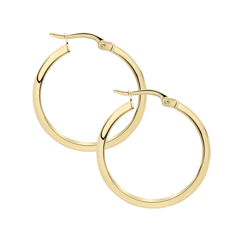 Classic D-shape hoop earrings with a lever fitting in 18ct yellow gold. Measurements: 4mm x 24mm