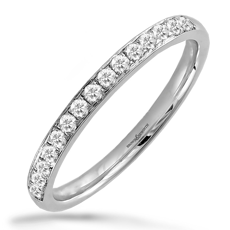 Sweetheart: Handcrafted by Brown & Newirth; round brilliant cut diamonds adorn 40% of this platinum classic court band. Total carat weight 0.25ct. Brown & Newirth diamond rings are handcrafted using specially calibrated diamonds in H colour and SI clarity.