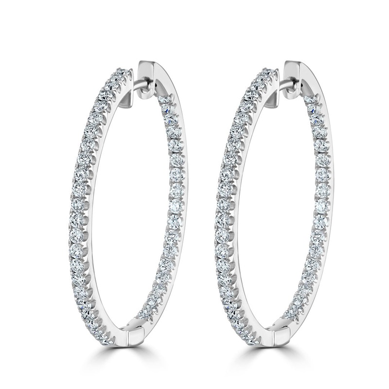 Set with a total of 1.04 carats of brilliant-cut diamonds, these hoops offer a beautiful balance of sophistication and contemporary style. The diamonds are precisely arranged along the front and inside back of each hoop, allowing for maximum sparkle with every turn, while the 18ct white gold setting provides a sleek and modern backdrop, enhancing the diamonds natural brilliance. Designed to be both luxurious and versatile, these hoops are an ideal choice for daily wear or to elevate evening attire, making them a perfect addition to any jewelry collection. With their secure fastening and timeless appeal, these diamond hoops are crafted for those who seek both style and substance, adding a radiant finishing touch to any look.