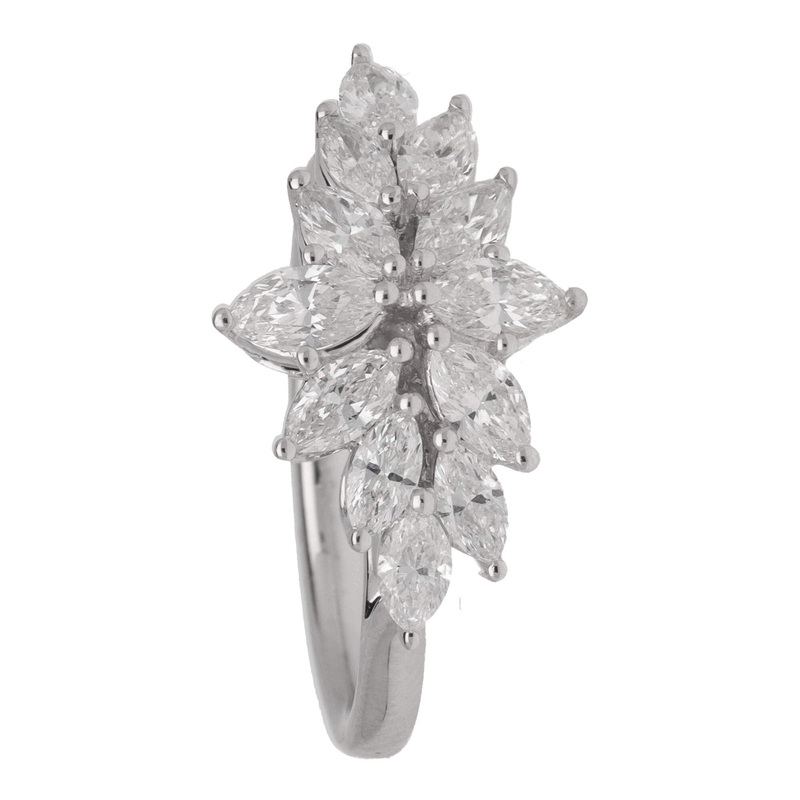 A dazzling platinum ring featuring 12 marquise diamonds totalling 1.40ct. Ring size M