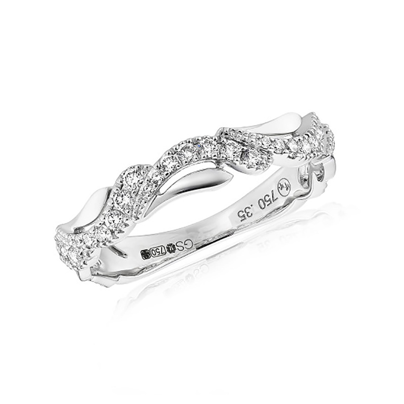 Make every gesture radiant with this captivating diamond ring. The intricate leaf twine with diamonds catch the light beautifully, making it an ideal accessory for both everyday chic and special occasions. Size N. Metal Weight: 2.6g Diamond Weight: 0.35ct