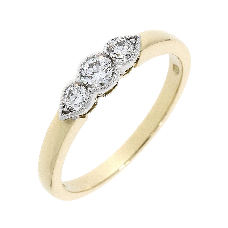 Diamond Millgrain 18ct Yellow Gold Three Stone Ring