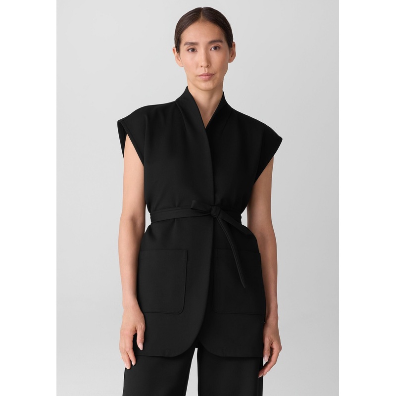 A modern shape you can wear on its own or as a last layer. The high collar vest with pockets, in our signature stretch ponte. Made in a Fair Trade Certified factory. (Copyright Eileen Fisher 2025) High collar Self-tie belt Flat shoulder to hem measurement: