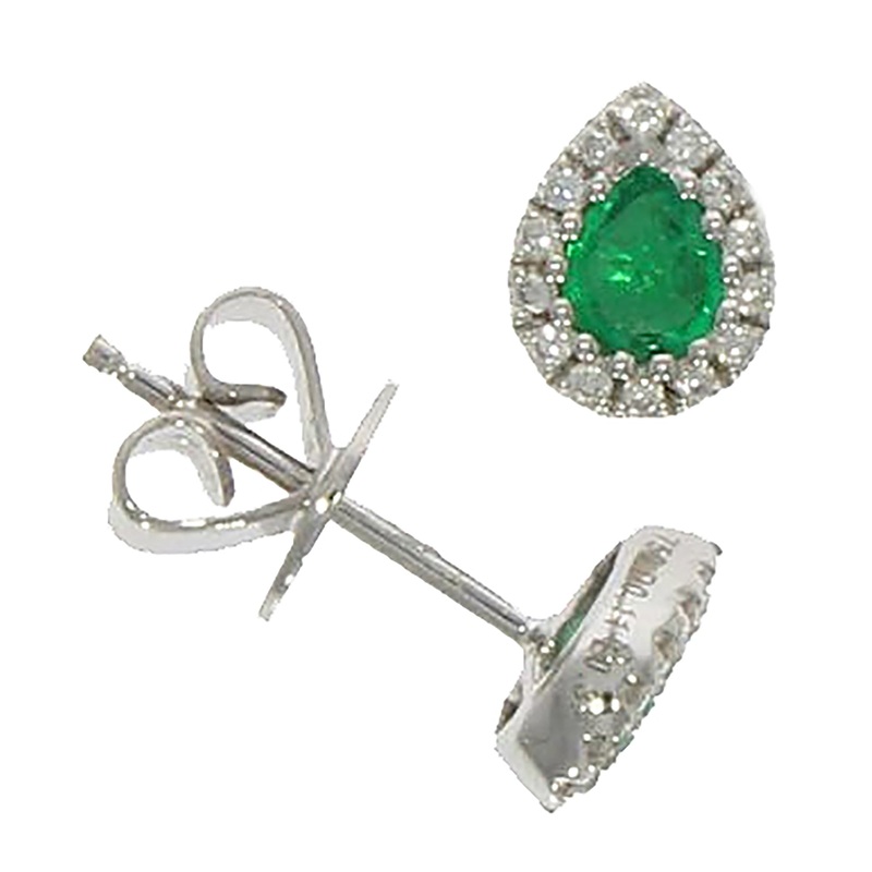 Stunning 0.32ct pear cut emerald with 0.11ct round brilliant cut diamonds set in 18ct white gold.