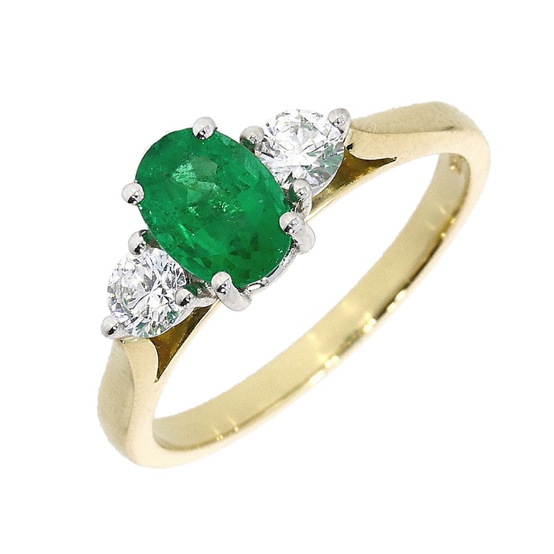 Emerald and Diamond 18ct Yellow Gold Three Stone Ring