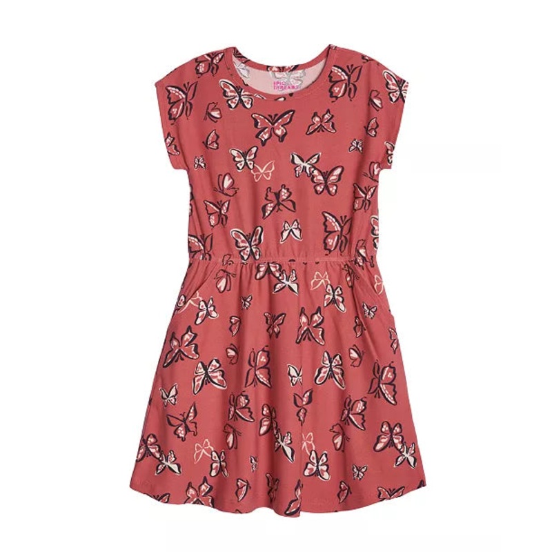 Epic Thread Girl's White Coral Dress Pockets add a functional and stylish feature to this comfortable and casual allover butterfly print knit dress from Epic Threads. Product Features Pullover with scoop neck Short dolman sleeves with slightly dropped shou