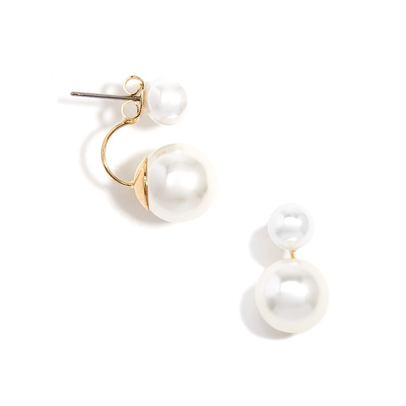 Stylish Costume Earrings Pearl ear jacket 18k gold-plating. Post Back Nickel and Lead Compliant (Hypoallergenic) SKU E2429