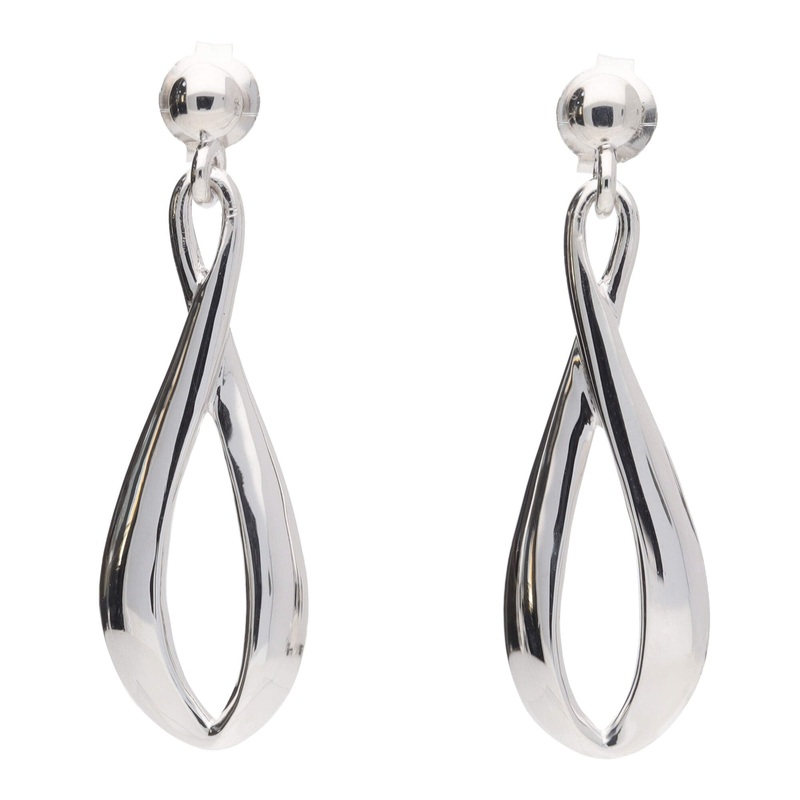 Drop earrings in an elongated figure of eight style, set in 9ct white gold.