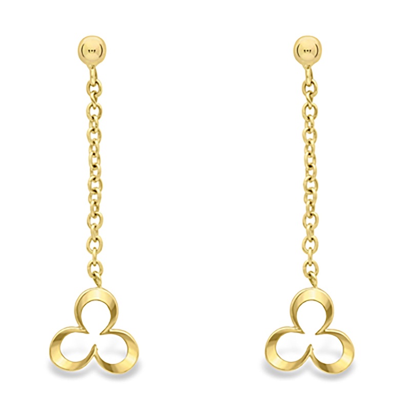 Drop earrings featuring a delicate flower design, set in 9ct yellow gold.