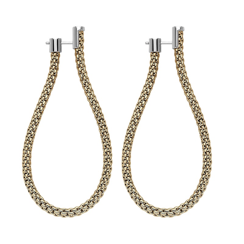 18 carat gold hoop earrings with Flex’it mesh chain from Fope’s Essentials collection.