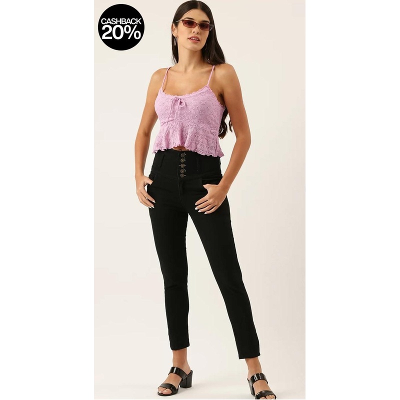 Forever 21 Women's Light Purple Lace Sleeveless Crop Top This Forever 21 women's light purple lace sleeveless crop top offers a stylish and breathable option for warm days or layered looks. Its delicate lace fabric adds a feminine touch, while the sleevele