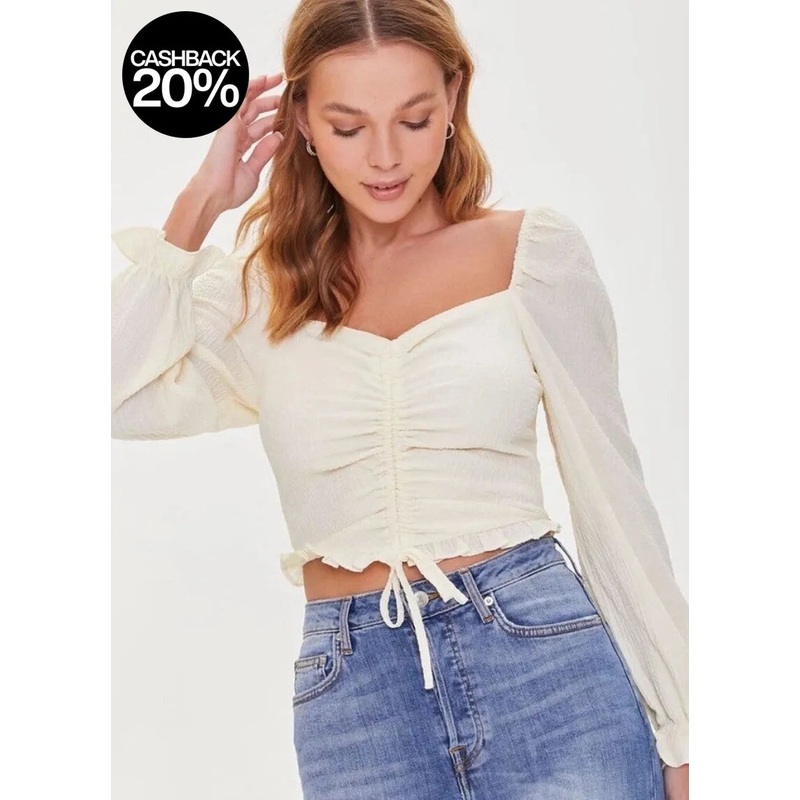 Forever 21 Women’s Off White Long Sleeve Off Shoulder Crop Top | Forever 21 In Lebanon