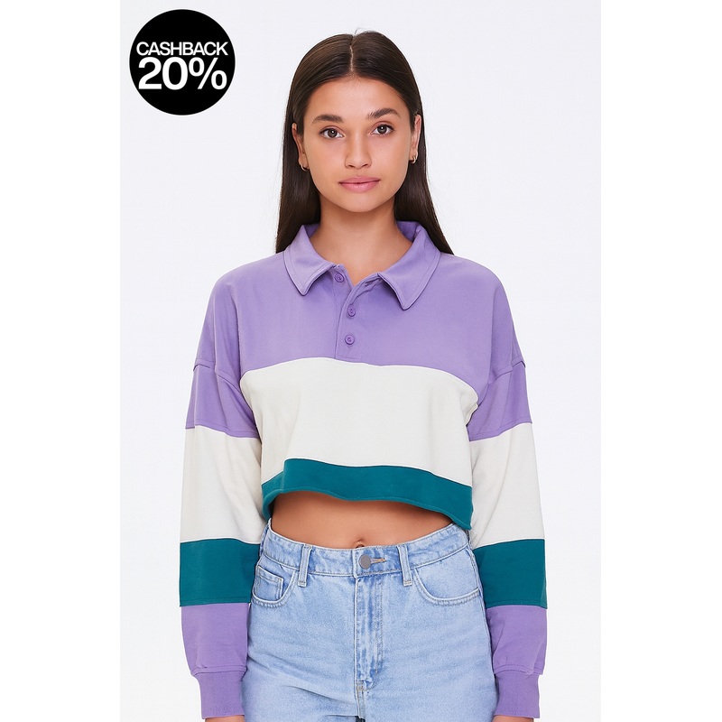 Forever 21 Women's Purple Multi Long Sleeve Crop Top Elevate your casual style with this Forever 21 Women's Purple Multi Long Sleeve Crop Top. Designed with vibrant multi-tonal purple hues and a flattering cropped fit, it combines comfort and trend effortl