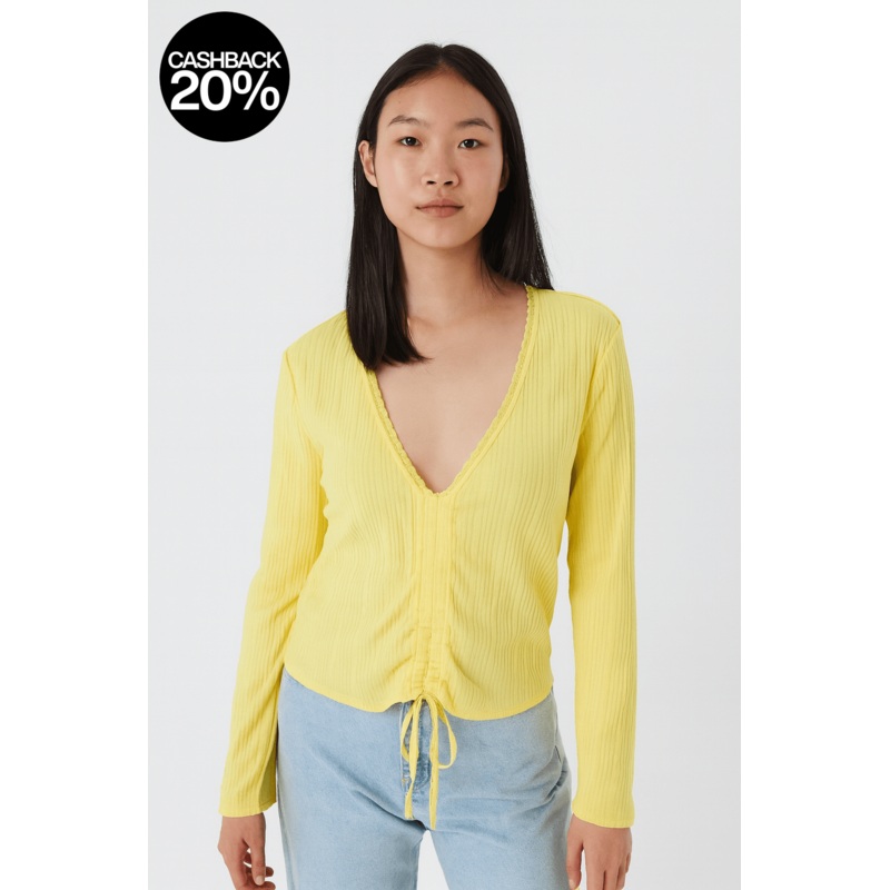 Forever 21 Women's Yellow Long Sleeve Ruched Blouse Add a bright touch to your wardrobe with this Forever 21 Women's Yellow Long Sleeve Ruched Blouse. Its vibrant yellow hue and ruched detailing provide a flattering fit while the long sleeves offer comfort