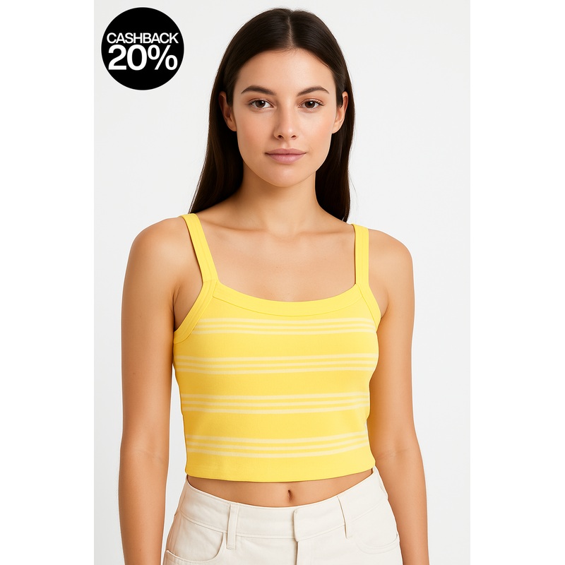 Forever 21 Women’s Yellow Striped Sleeveless Crop Top |Forever 21 In Lebanon
