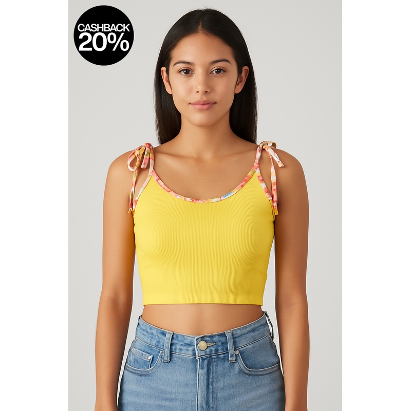 Forever 21 Womens Yellow Ribbed Tie Sleeves Crop Top |Forever 21 In Lebanon