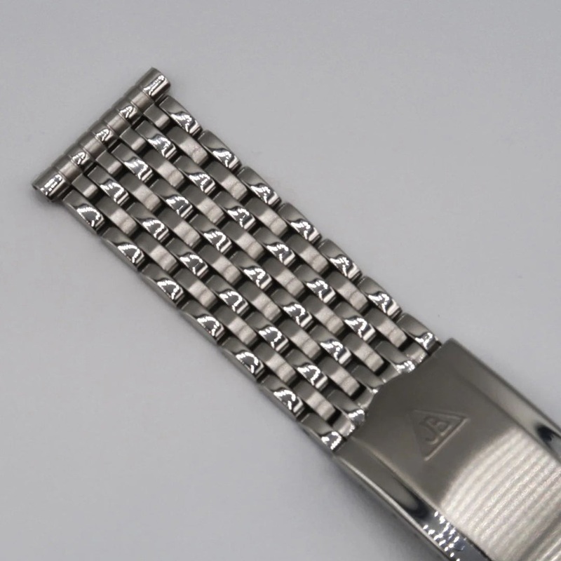The beads of rice (sometimes called a grains of rice bracelet) is one of those quintessential watch accessories that belongs in every collection. Once made by Jacoby-Bender in the mid-twentieth century, the beads of rice style bracelet was provided with some of the most storied watches of all time (stainless steel Patek Philippe chronographs come to mind), and for good reason. The bracelet exudes a subtle elegance that completely transforms the look and feel of your watch over a more typical leather strap. While it’s great with virtually any vintage watch, the beads of rice works equally well with contemporary dress (or cross-over dressy/sporty) watches.