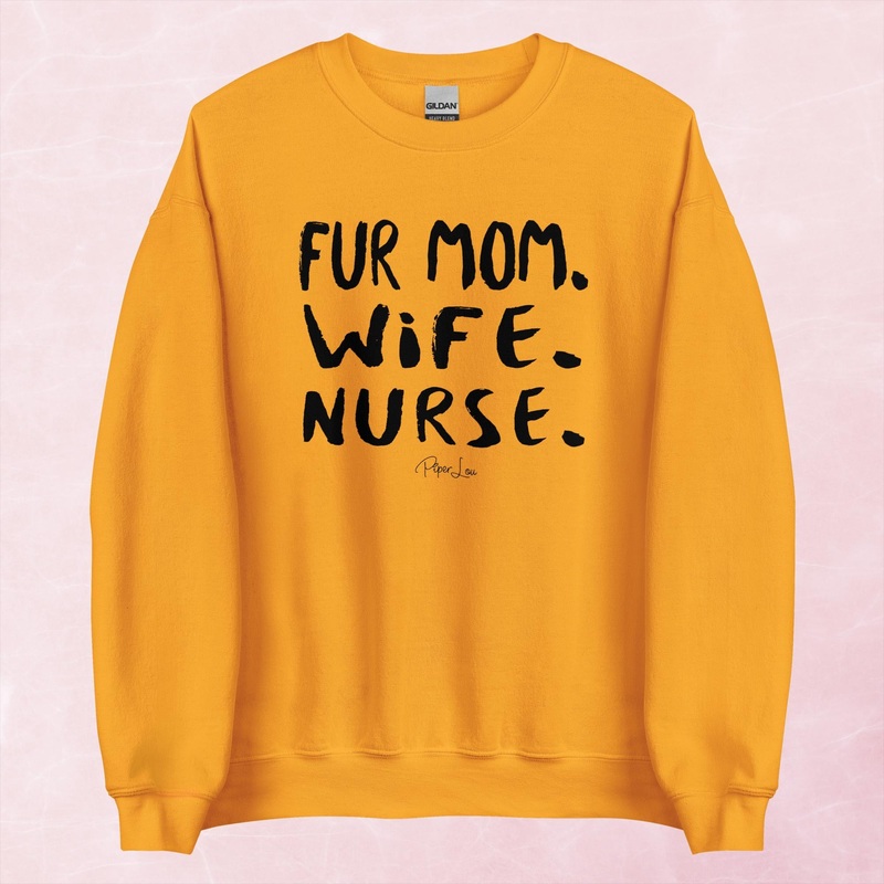 Fur Mom Wife Nurse Graphic Crewneck Sweatshirt
