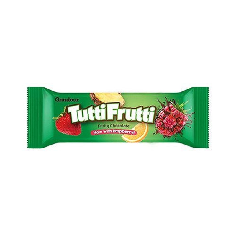 Gandour Tutti Frutti Chocolate 29g calories 492 Protein 5.7g Carbohydrates 58.7 Fat 25.6g