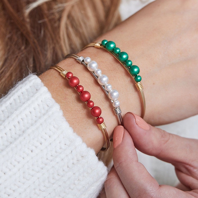 Graduated Crystal Pearl Bangle Bracelet (Scarlet)