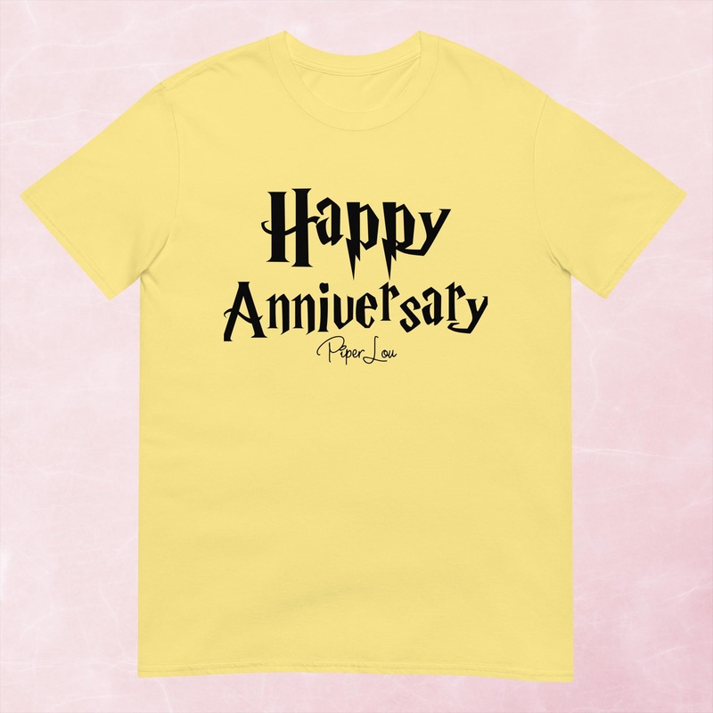 Happy Anniversary Graphic Tee|Heather Red|Tropical Blue|Sand|Light Blue|Sport Grey|Cornsilk|White|S|M|L|XL|2XL|3XL