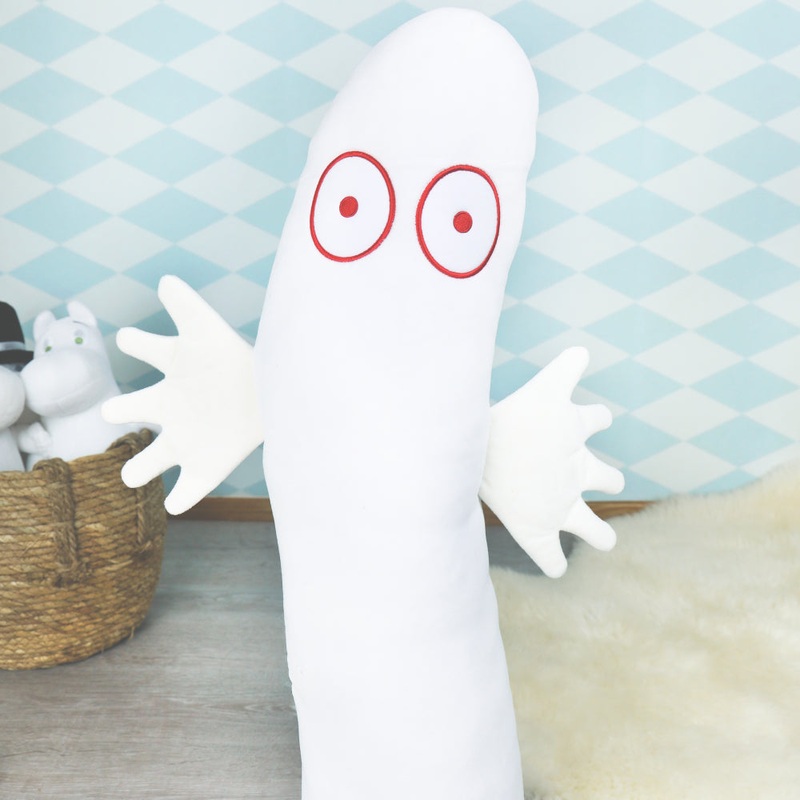 In English A large, soft Hattifattener plushie. Its softness and size makes is perfect for hugging, to be used as a pillow, for playtime for big and small Moomin fans!The hattifatteners are white, almost harmless characters that mostly resemble the foot of
