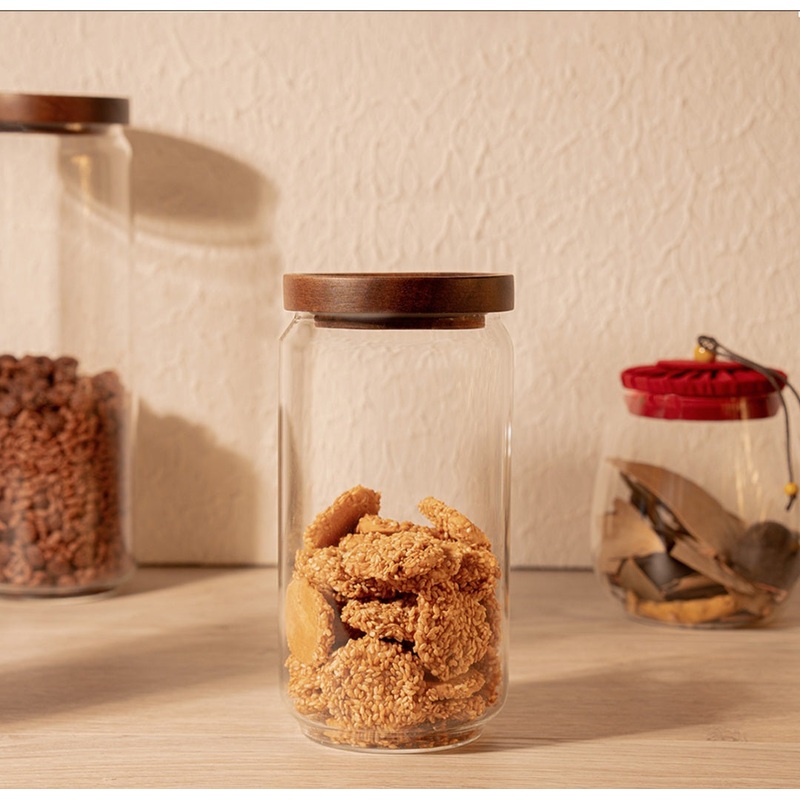 Hinox Glass Jar With Wood Lid Q-23 Suitable For : Your Kitchen Storage Material : High Borosilicate Glass Package Included 1 Piece Glass Jar Color - Transparent :Brown Feature Durable Used For Storage