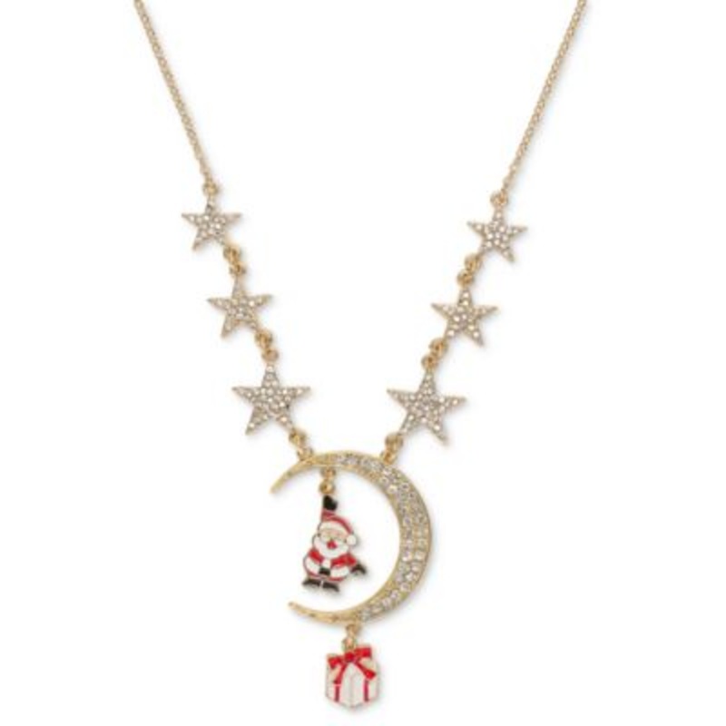 Holiday Lane Women's Gold Star Moon Santa Clause Necklace 1. Celebrate the festive season with our charming Santa Claus necklace, featuring a delightful Santa pendant adorned with sparkling stars that capture the magic of Christmas. 2. Crafted from high-qu