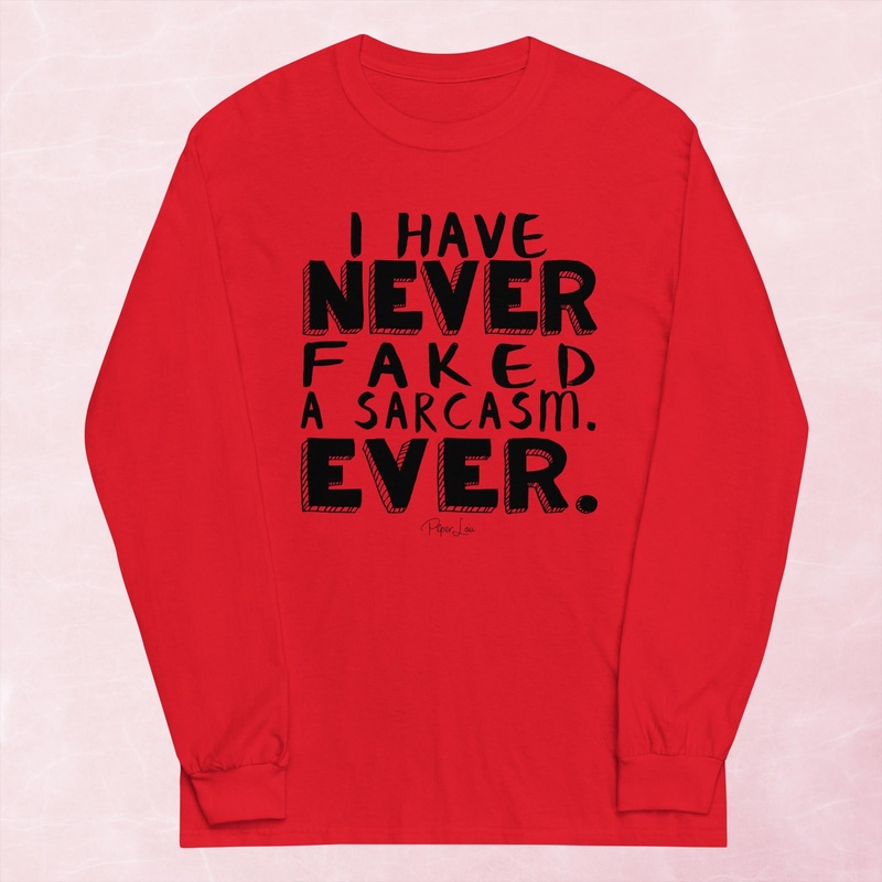 I Have Never Faked A Sarcasm Graphic Long Sleeve Tee