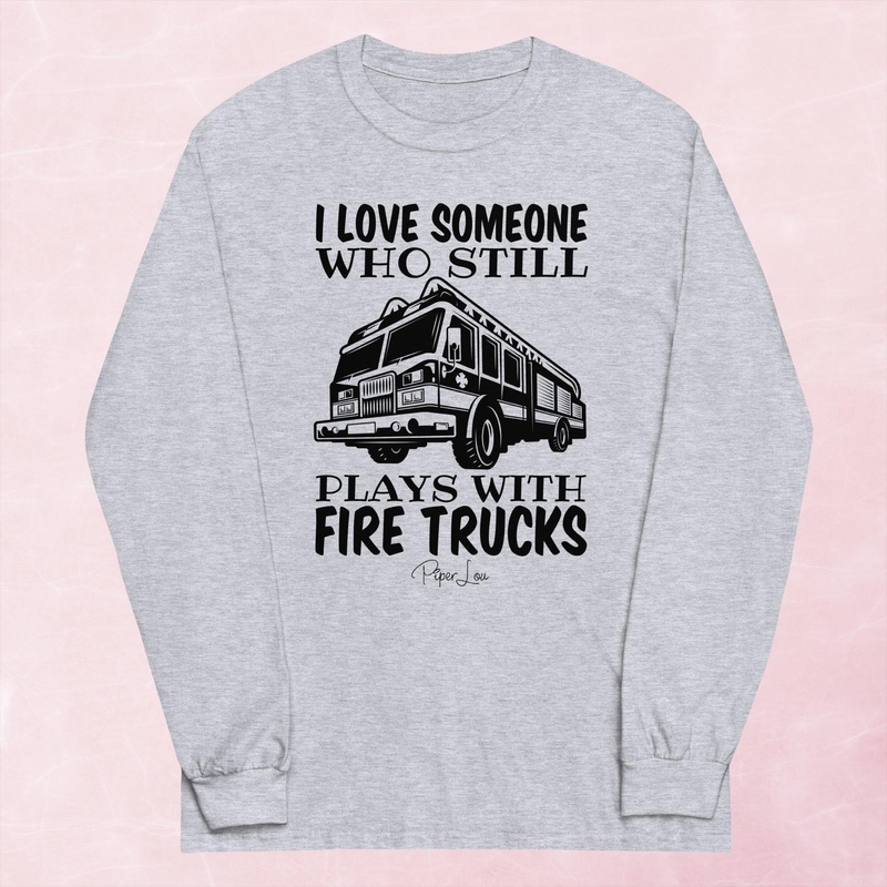 I Love Someone Who Still Plays With Fire Trucks Graphic Long Sleeve Tee